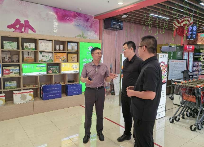 6月21日,赤峰市政府辦公室副主任青龍?jiān)?/span>中心城區(qū)調(diào)研“赤誠(chéng)峰味”商超展示工作開(kāi)展情況,赤峰市城市建設(shè)投資(集團(tuán))有限公司“赤誠(chéng)峰味”品牌運(yùn)營(yíng)推進(jìn)專(zhuān)班成員陪同調(diào)研。