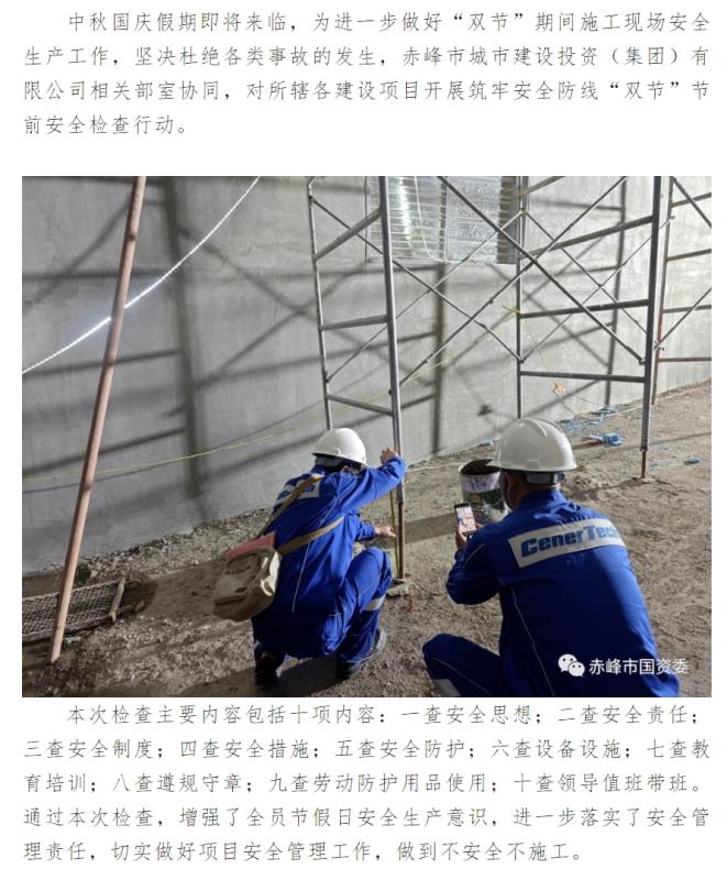 赤峰市城市建設投資(集團)有限公司開展筑牢全防線“雙節(jié)”節(jié)前安全檢查行動