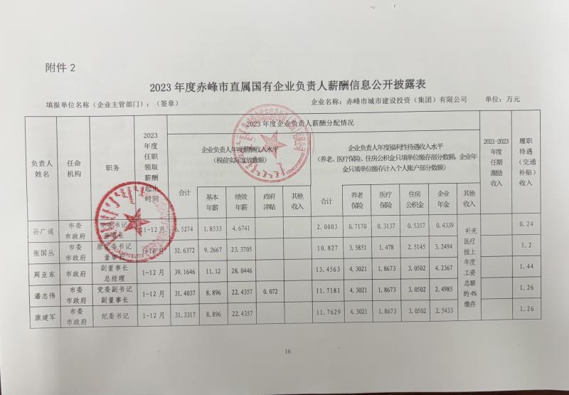 2023年度赤峰市直屬國有企業(yè)負責(zé)人薪酬