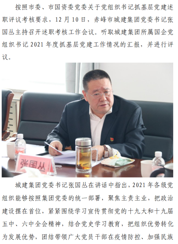 赤峰市城建集團召開2021年度黨組織書記抓基層黨建述職評議考核會議